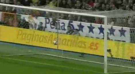 キーパーはニアに倒れているが、ボールはファーに飛んでいる。